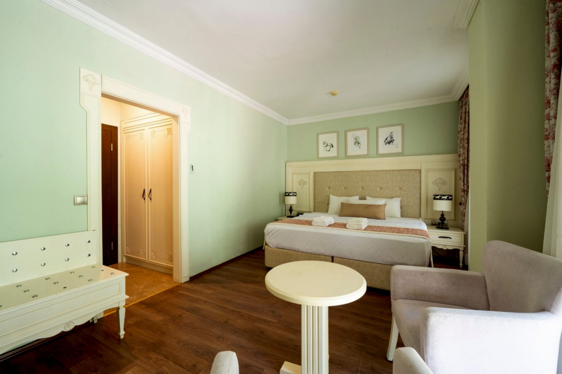 Deluxe odalar 24 m2 olup, daha geniş ve ferah oda keyfini yaşamanız için ayrılmış bölümü ve oturma grubuyla hizmetinizdedir.